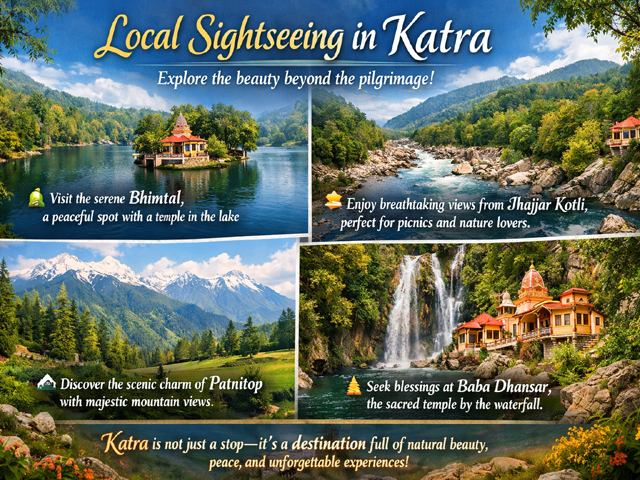 Jhajjar Kotli is a scenic picnic spot located about 15 km from Katra. It is known for its crystal-clear water stream, making it a perfect retreat from the pilgrimage.