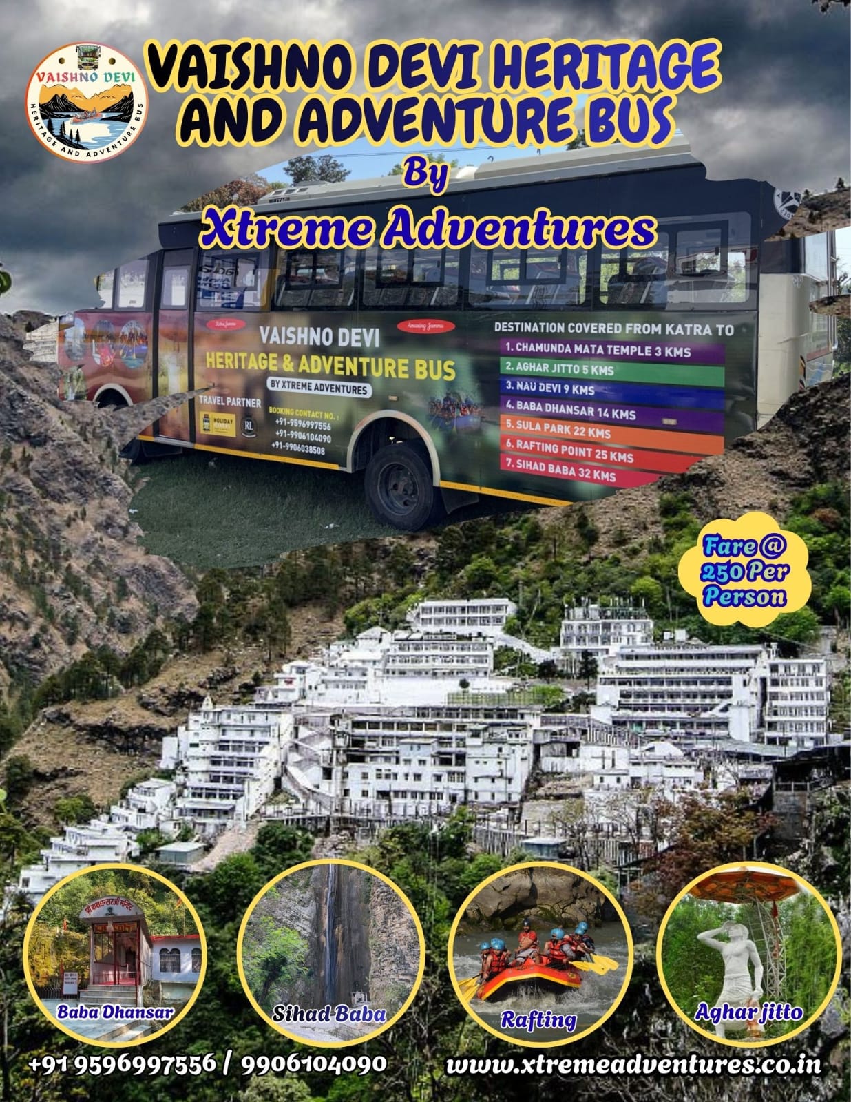 Experience the perfect blend of spirituality and thrill with our Vaishno Devi Heritage and Adventure Bus Tour. Visit the sacred Vaishno Devi Temple while enjoying scenic mountain views and a comfortable journey. Discover local heritage, explore beautiful landscapes, and make your pilgrimage truly memorable. Travel safe, travel easy, and let your journey be as divine as the destination.